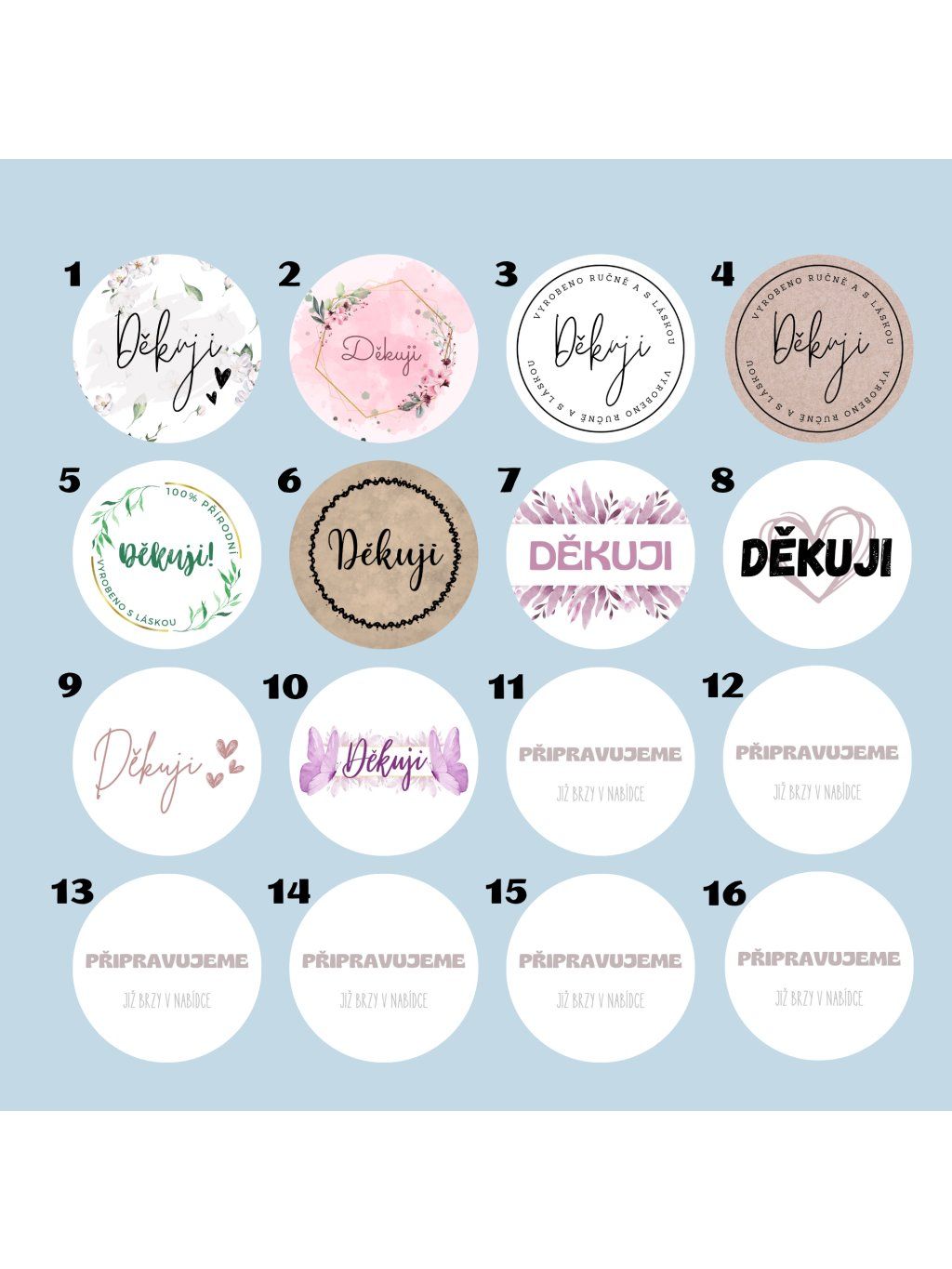 Samolepky jsou tištěný na arch A4, v kulatém rozměru a ve vámi zvolené velikosti.