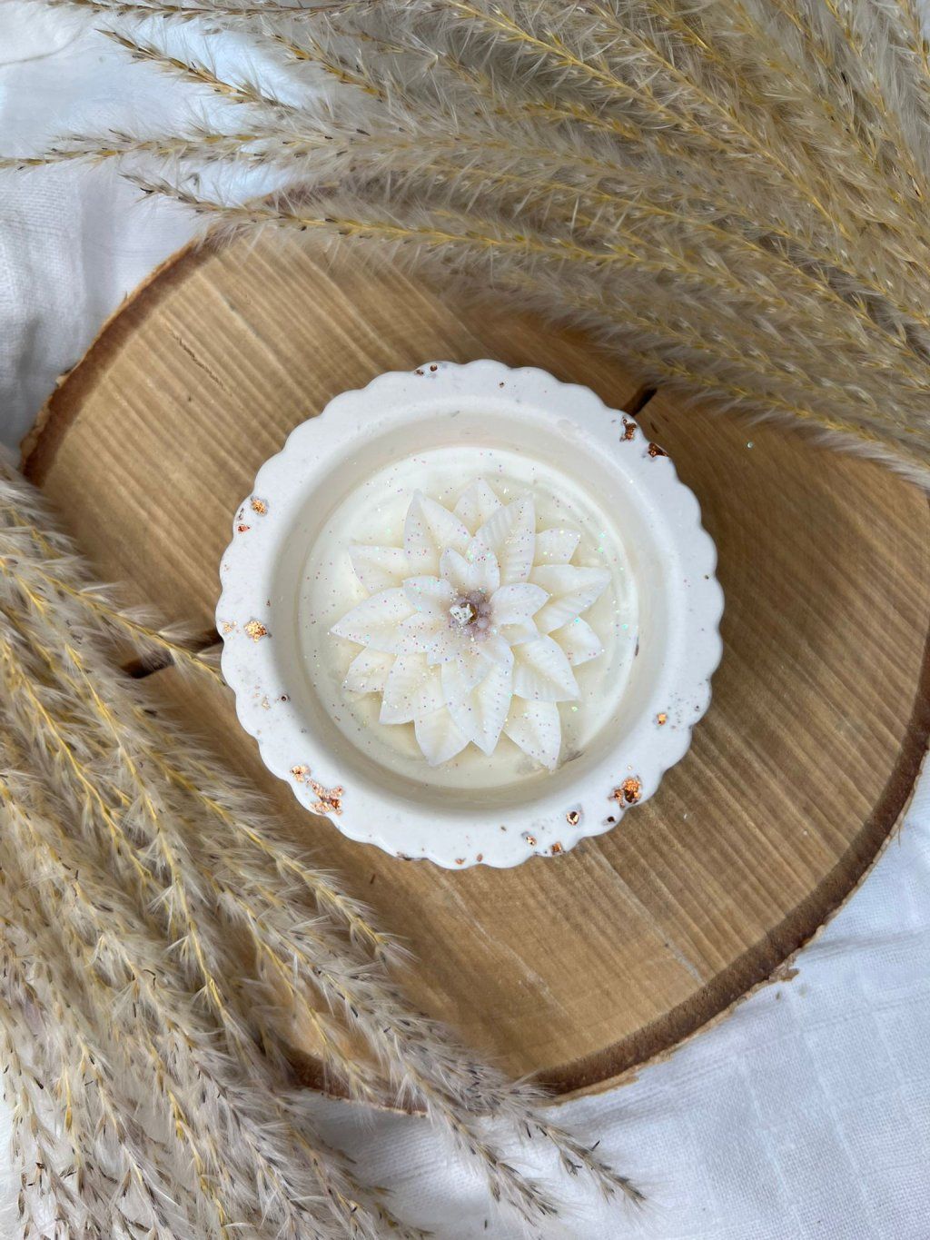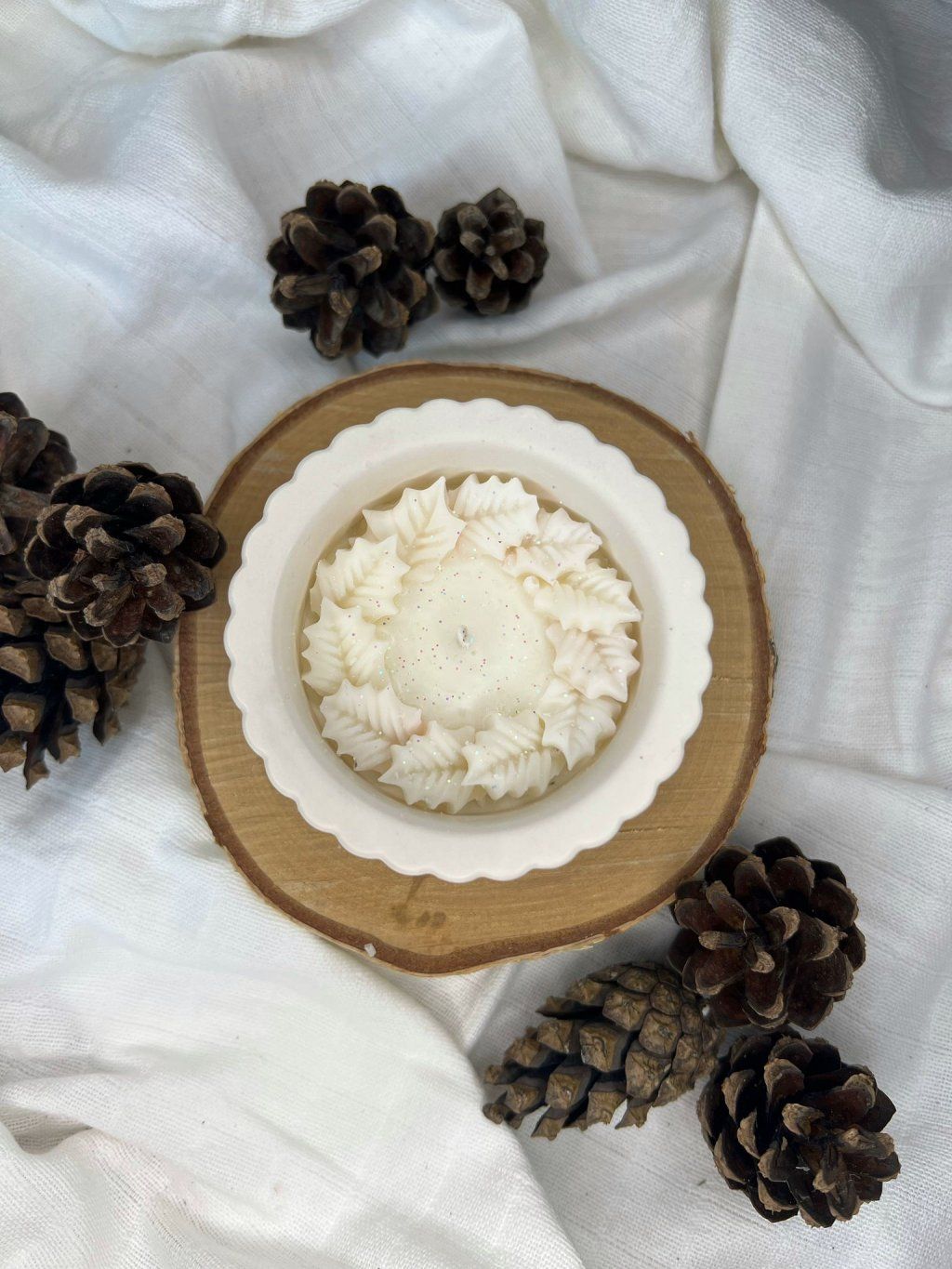 • 100% sójový vosk s příměsí vonných olejů (základ svíčky) a barviv (dekorační prvky)