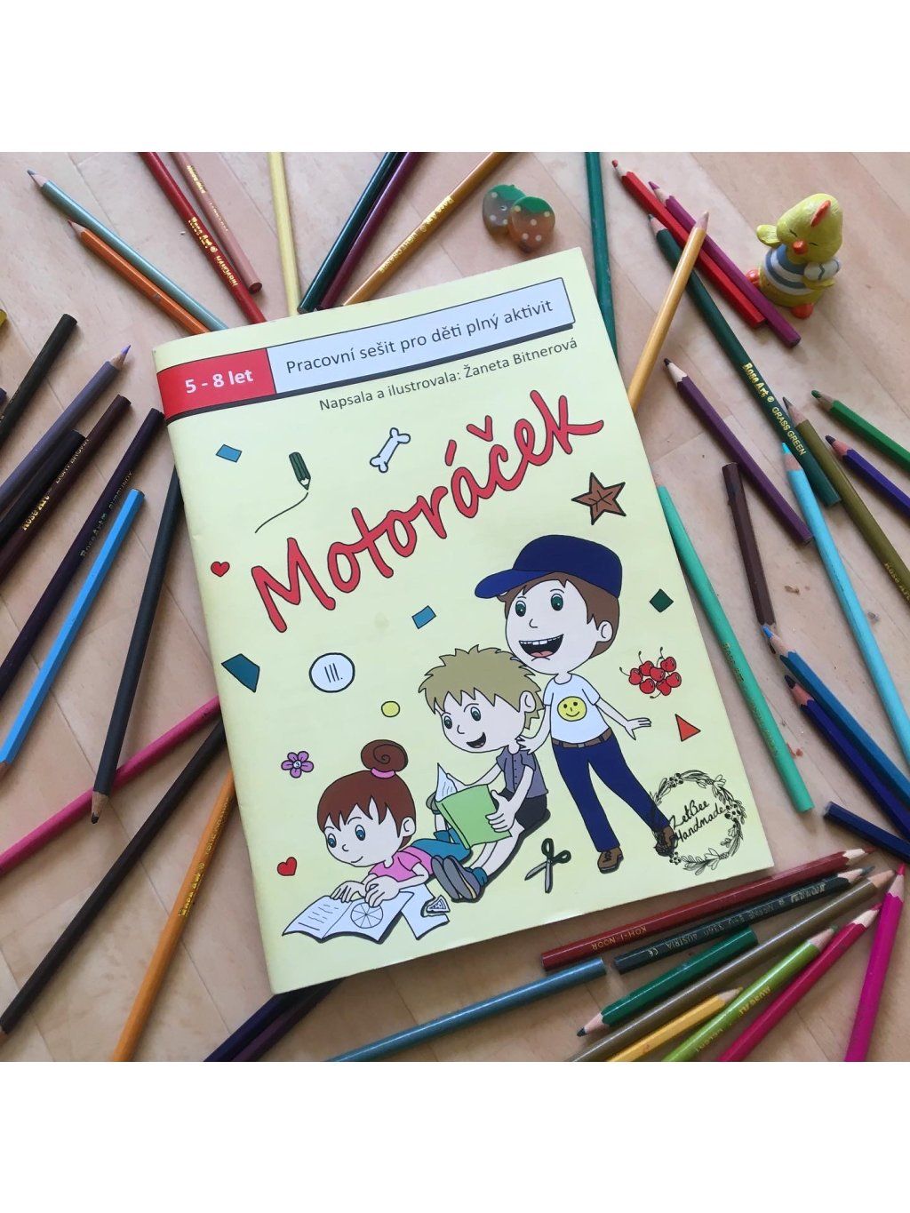 Pracovní sešit Motoráček je soubor pracovních listů, jejichž různorodé aktivity pomáhají dětem ve věku 5-8 let při procvičování jemné motoriky, díky čemuž budou lépe připraveny na psaní číslic a písmen.